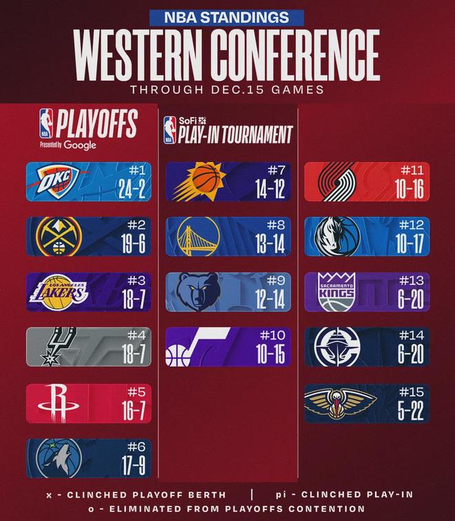 NBA最新積分榜:掘金第2,火箭第5,灰熊第9,快船第14